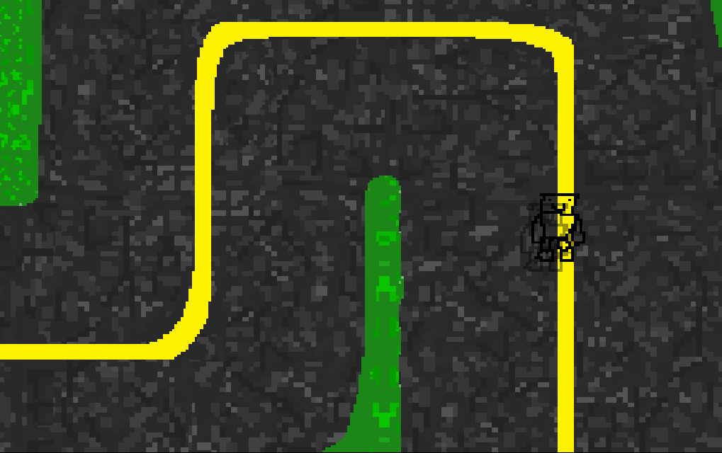 Today I began making a line on the road that is proportionate to the road and centered. It wasn't hard to do so after that I added a grass siding to it so it properly blends with the grass. After I did that I worked on the turns/corners of the road path. I made it all line up and it is almost done just needs a few more touch ups. I also went to my old laptop and transferred the sprite images because for some reason it didn't work before.